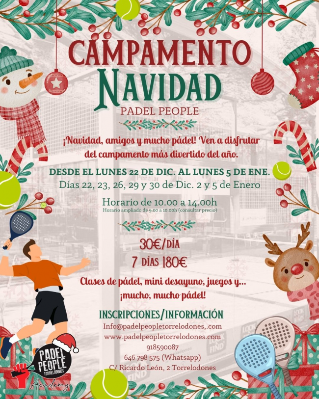 🎄 Campamento de Navidad Padel People 2025 en Torrelodones Estas Navidades, el deporte y la diversión se unen en el Campamento de Navidad de Padel People Torrelodones, una oportunidad única para que los niños disfruten del pádel en un ambiente navideño, activo y lleno de energía. 📅 Fechas y horarios del campamento El campamento se…